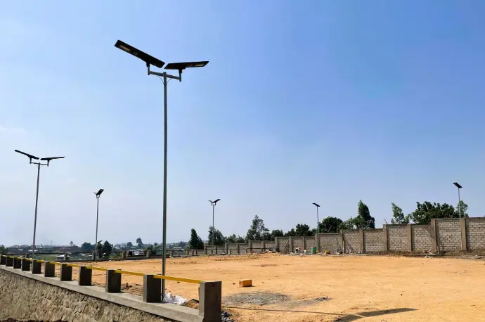 GoShop Energy a assuré la mise en place du nouveau dépôt de Brasimba à Bunia en mettant en œuvre 30 lampadaires solaires SSS-100W-GoPower. Cette approche novatrice a supprimé les dangers d'accidents dus à l'obscurité de la nuit, assurant une sécurité continue et une amélioration de l'efficacité opérationnelle dans ce cadre industriel.