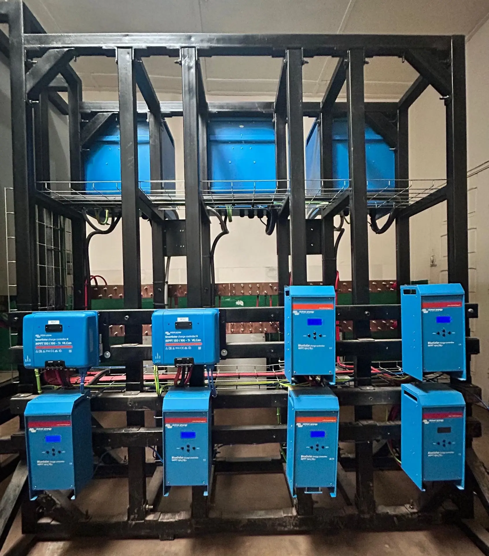Three Victron 48V / 15,000 VA converters, with a combined power output of 45 kVA, ensure a stable and continuous power supply to critical equipment;